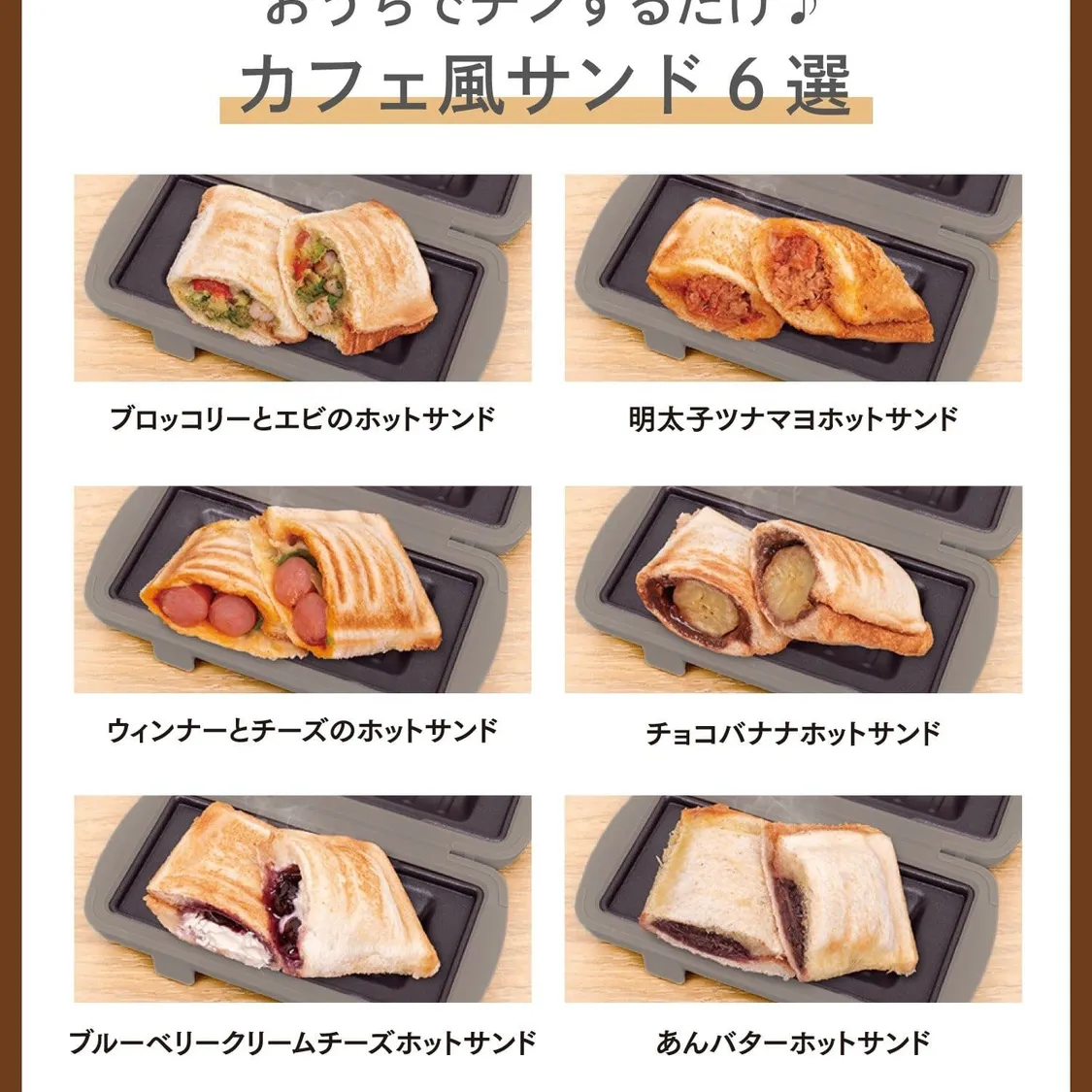 ● 只需將您喜愛的食材放入三明治中,放入微波爐加熱即可享用美味的烤麵包。