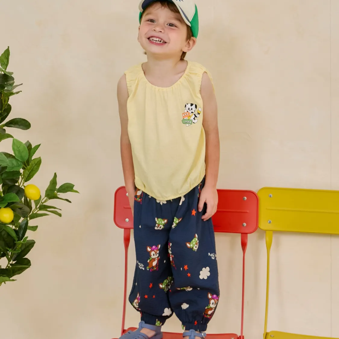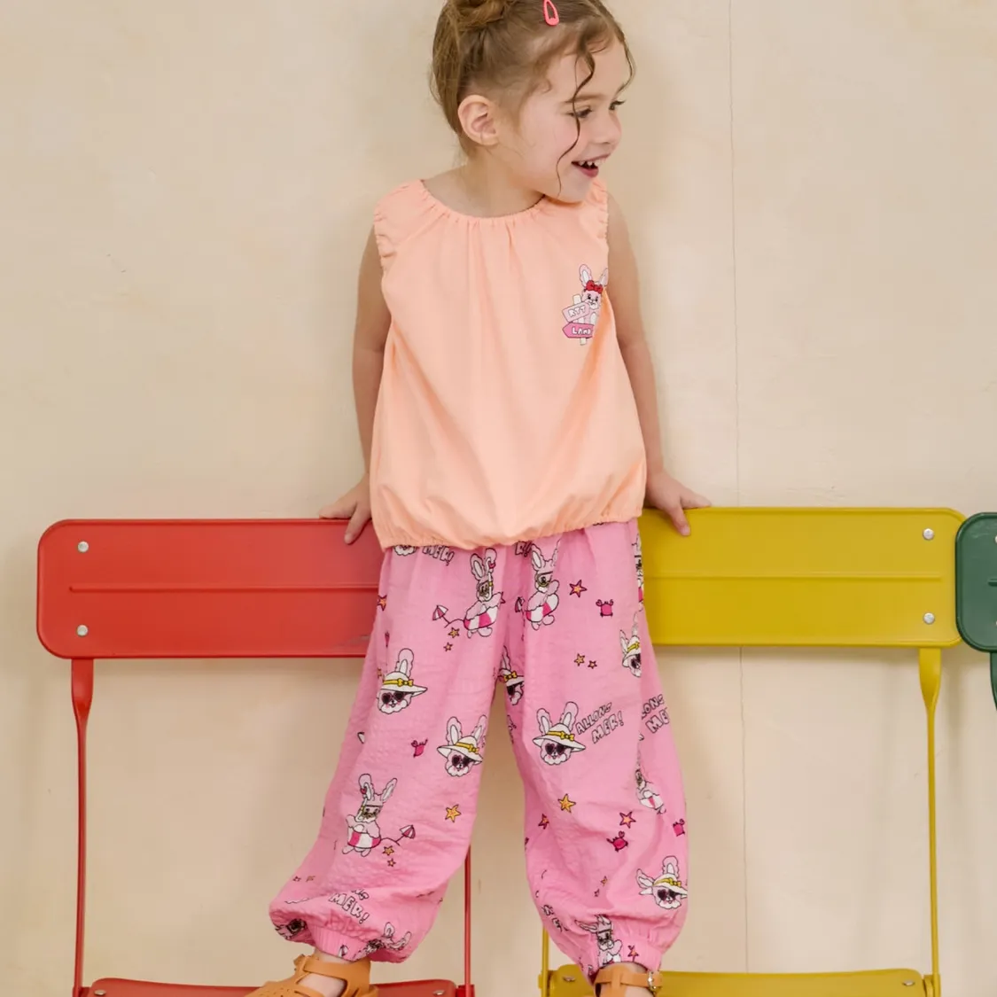 ROTOTO-滿印泡泡紗縮口褲